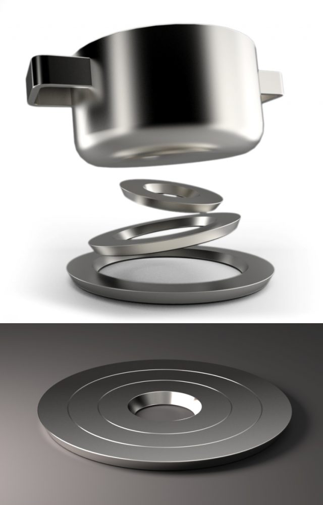 Die ineinander passenden Topfuntersetzer erinnern an die Ofenringe von alten Küchenöfen.
