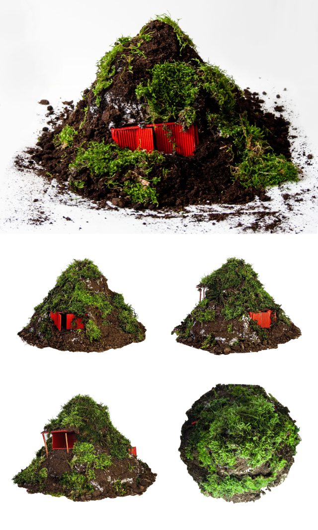 Containerberg Modell Modell aus Papier, Pappe, Blumenerde & Moos etwas kleiner als 50x50cm Kontext: Was passiert, wenn…