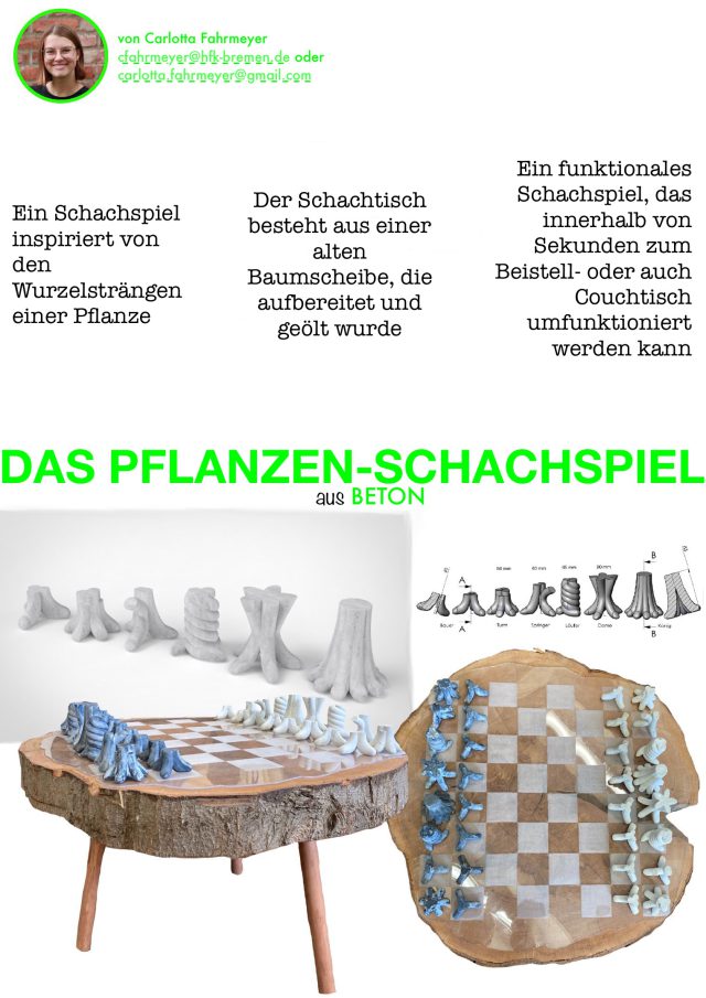 Das Schachspiel aus Beton ist inspiriert von den Wurzeln einer Pflanze. Der Tisch besteht aus…